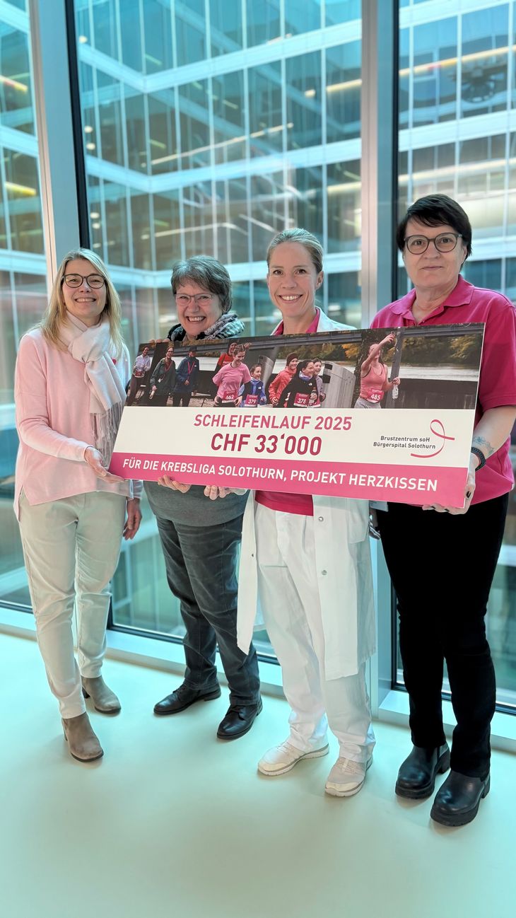 Die Spenden für jeden gelaufenen Kilometer fliessen an das Projekt „Herzkissen“ der Krebsliga Solothurn zur Unterstützung von Brustkrebsbetroffenen.