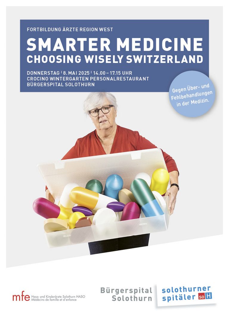 Sie erhalten interessante Informationen hinsichtlich der medizinischen Versorgung nach den Grundsätzen von Smarter Medicine – Choosing Wisely Switzerland. Die Referentinnen und Referenten führen durch die Evidenz, zeigen Red Flags auf, und wo welche Behandlungs- und Abklärungsmassnahmen angezeigt sind.