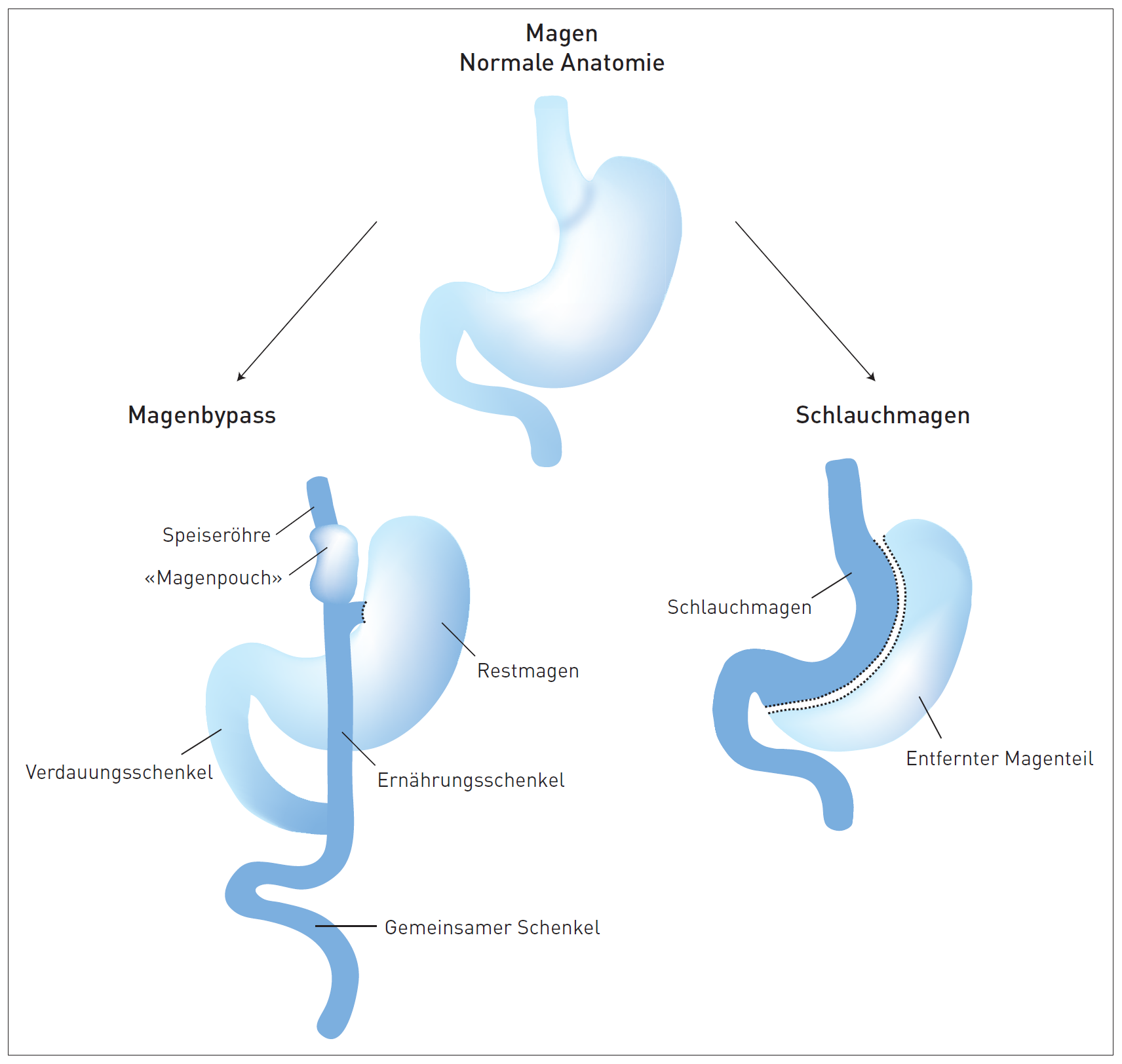 Wir befassen uns mit operativen Eingriffen, die bei übergewichtigen Patientinnen und Patienten eine Gewichtsreduktion herbeiführen.